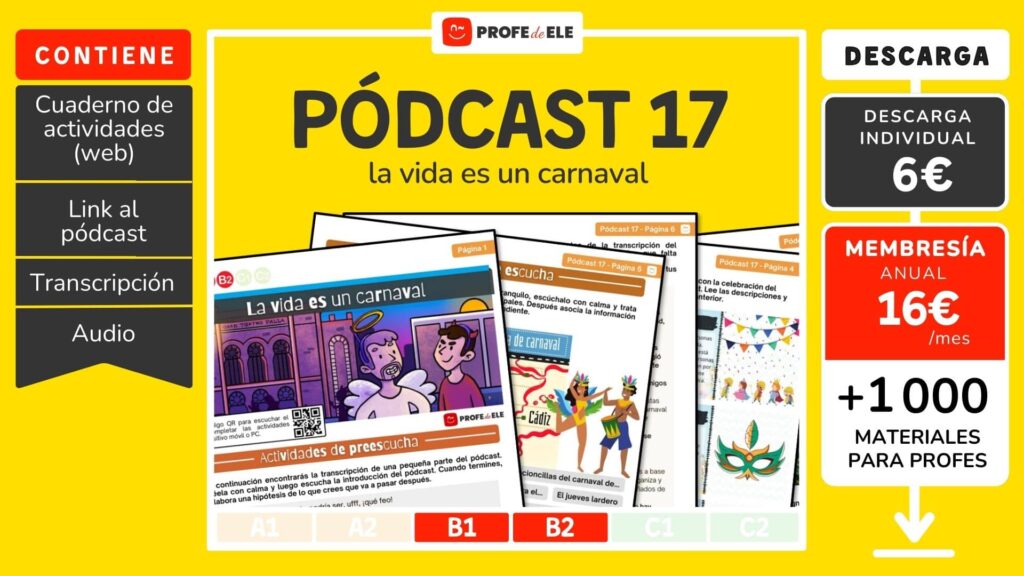 A continuación encontrarás vocabulario relacionado con la celebración del carnaval. Son palabras que aparecen en este pódcast. Lee las descripciones y completa las palabras que no sabías de la actividad anterior.