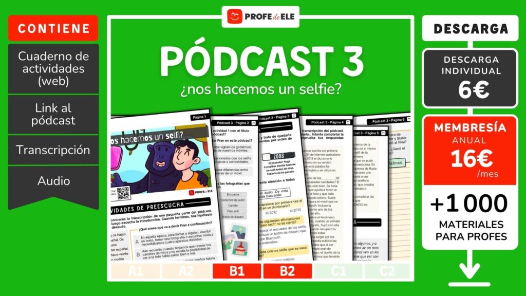 Tercer podcast de ProfeDeELE.es en colaboración con Virtual Spanish Classroom. Escúchalo las veces que quieras y completa las preguntas de comprensión auditiva sobre el podcast. Si lo crees conveniente, puedes activar la opción de subtítulos en el vídeo de YouTube para leer la transcripción. Si eres profesor, en breve colgaremos una explotación didáctica del podcast.