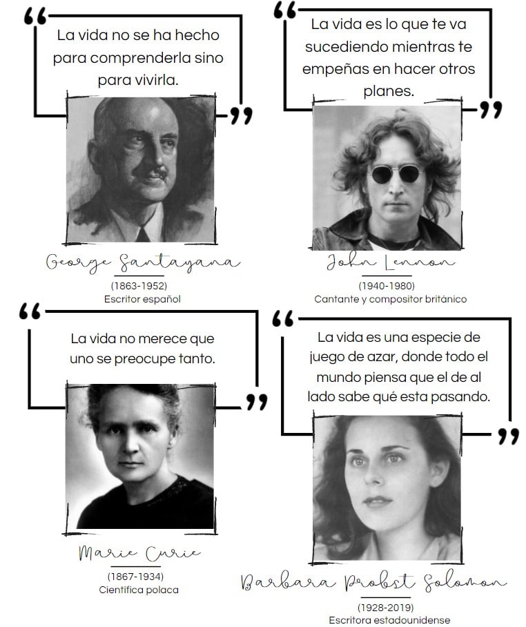 A continuación tienes una serie de citas sobre la vida. Coméntalas libremente.