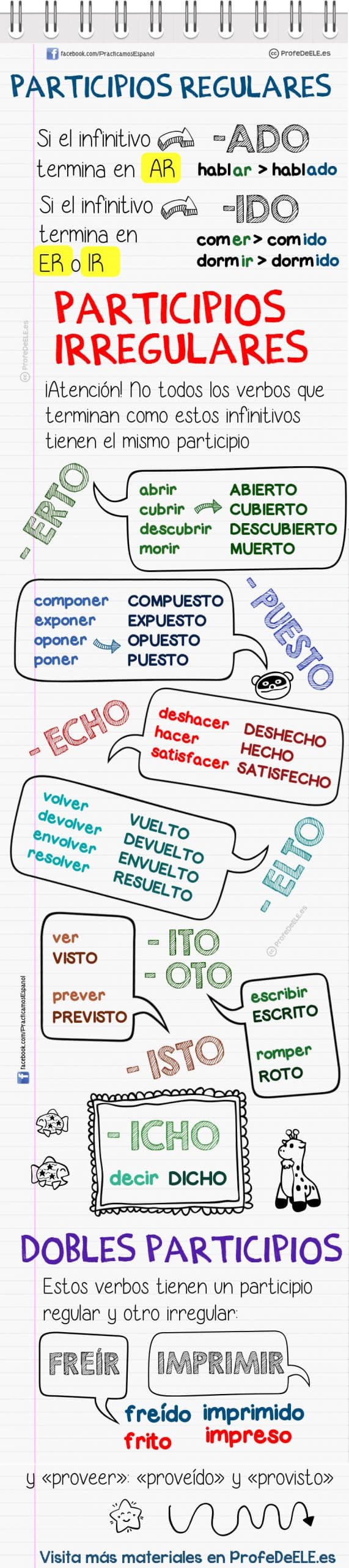 Ahora vamos a practicar. Completa los siguientes diálogos del corto con el pretérito perfecto. Presta atención a los participios irregulares. Recuerda que, a diferencia de otras lenguas, en español el participio no varía en función del género del sujeto: Él ha llamado/Ella ha llamado.