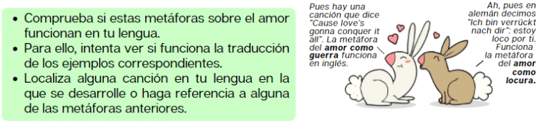 Relaciona las siguientes cuatro metáforas sobre el amor con los ejemplos correspondientes.