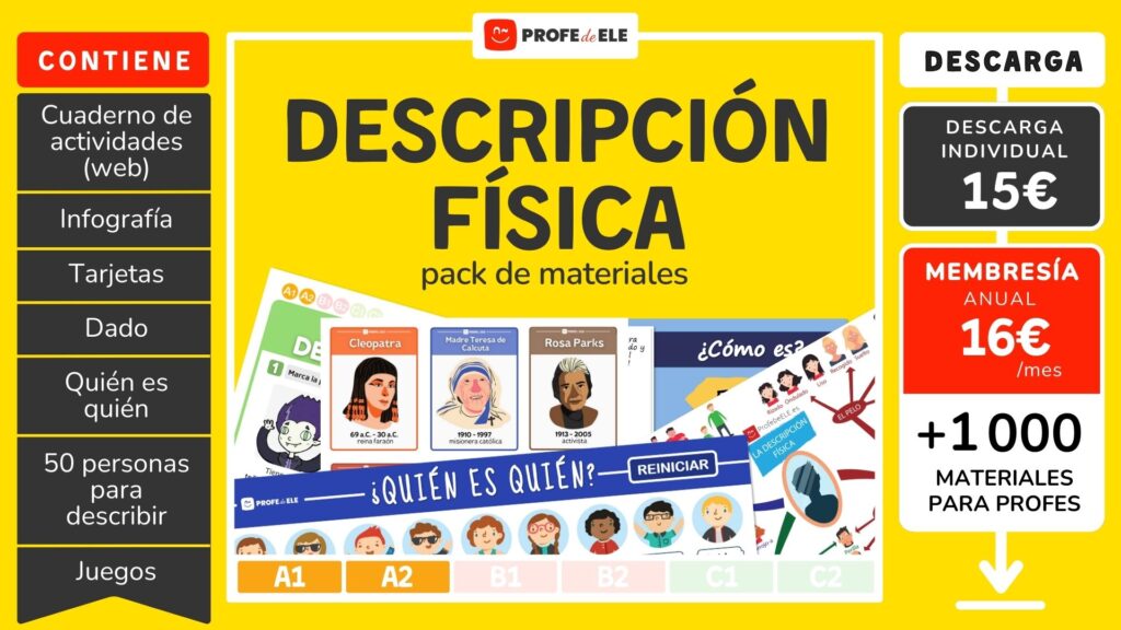 Ahora puedes elegir un personaje y jugar con tus compañeros al quién es quién. Ellos te tienen que hacer preguntas de la descripción del físico para responder con un sí o un ...