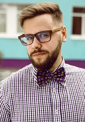 Yo pienso que es un hombre un poquito feo. Él mide 1,75. No es ni alto, ni bajo. Tiene el pelo rubio, corto y liso. Lleva gafas. Tiene los ojos azules y la nariz grande. Lleva barba y bigote.