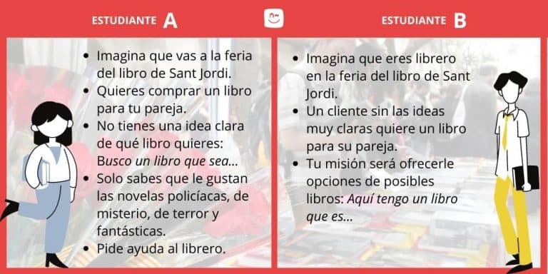 • Actividad 8: para seguir practicando este uso del subjuntivo, te proponemos un juego de rol en parejas donde cada estudiante tiene una misión de información que necesita.