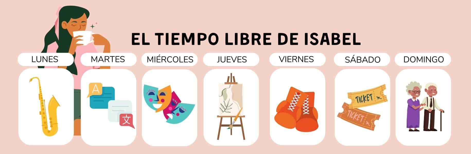 Sigue las instrucciones para escribir sobre el tiempo libre de Isabel.