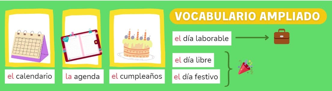 Observa este mapa de ideas del vocabulario de días de la semana, meses y estaciones del año y arrastra las palabras del cuadro al grupo correspondiente. Después intenta recordar las palabras y escríbelas en los espacios.