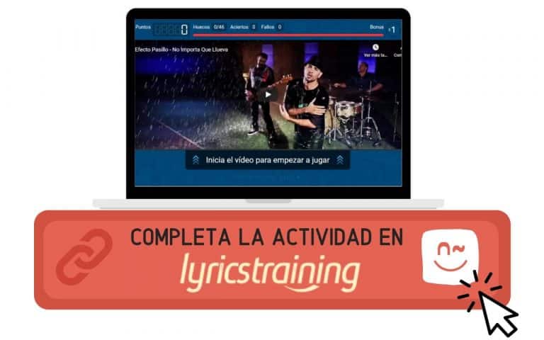 Ya has visto que la canción no tiene nada que ver con el tiempo. Aun así, aparecen muchas palabras relacionadas con la meteorología. Demuestra que conoces los nombres de los fenómenos meteorológicos con este ejercicio:
