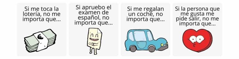 La estructura que tienes que aprender es No importa que + subjuntivo. Pero CUIDADO si la persona a la que no le importa y en la que se conjuga el verbo es la misma, la fórmula es No importa + infinitivo. Por ejemplo: No me importa suspender VS No me importa que tu amigo suspenda. ¿Lo ves?