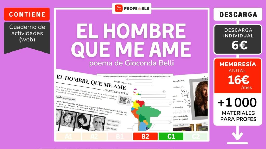 Explora la poesía de Gioconda Belli y las comparaciones con esta unidad didáctica. Actividades para mejorar comprensión y expresión-B2-C1.