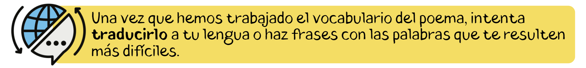 Esta secuencia de aprendizaje ofrece una serie de actividades para alumnos diseñados para promover la participación activa y la enseñanza práctica, además de explorar este tema de manera gradual y efectiva. La unidad comienza con actividades de contextualización sobre grandes referentes de la literatura hispanoamericana (poesía, cuento, novela y ensayo) y datos biográficos de la autora. Continúa con actividades para discutir en clase los posibles temas que abordará la poesía en cuestión, basándose en algunos versos, una nube de palabras y el título. En la actividad 7 se presenta el texto de la poesía para trabajar la lectura en voz alta (recitar o declamar) y la comprensión. Posteriormente, se incluyen actividades para trabajar las ideas principales y utilizas expresiones similares a las utilizadas en el texto. Tus alumnos trabajarán el vocabulario de sentimientos, estados de ánimo, características personales y cantidad para trabajar algunos procesos morfológicos de cambio de adjetivos a sustantivos, y viceversa. También se incluyen actividades sobre recursos literarios utilizados en la poesía como el símil y ejercicios de escribir utilizando los contenidos repasados. Finalmente, se incluye una evaluación para consolidar los nuevos conocimientos y recursos para ampliar la unidad con otros poemas y el contacto público de la autora.