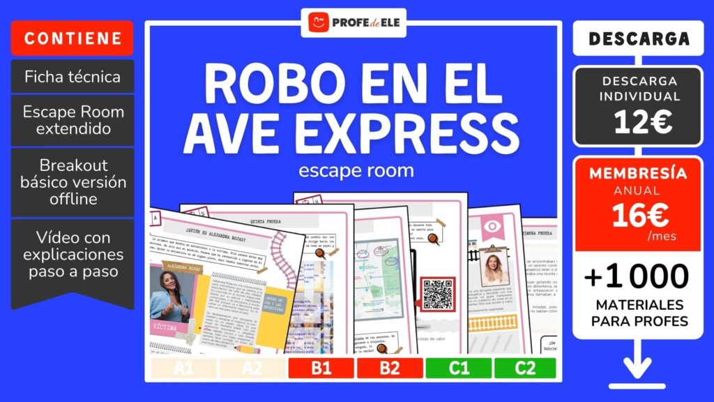 Sumérgete en este Escape Room interactivo para aprender vocabulario del tren y ciudades españolas. Perfecto para dinamizar tus clases de niveles B1-C2.