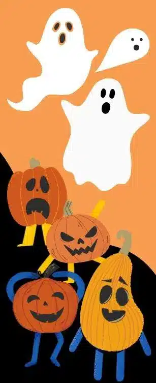 tres fantasmas – cuatro calabazas – tres vampiros – dos brujas – un hombre lobo – tres momias