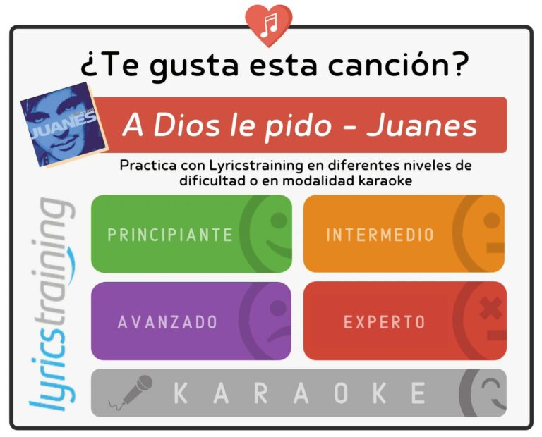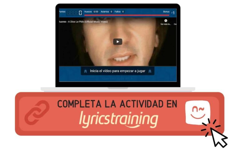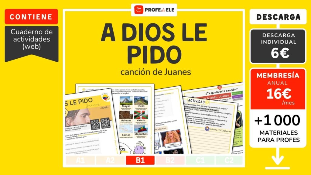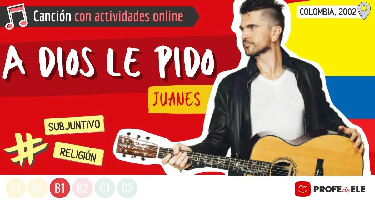 Ahora vas a escuchar la canción titulada A Dios le pido de Juanes. En ella practicarás la estructura “pido que + presente de subjuntivo”. Completa esta actividad en Lyricstrainning y después vuelve a ProfeDeELE para seguir con el resto de actividades.