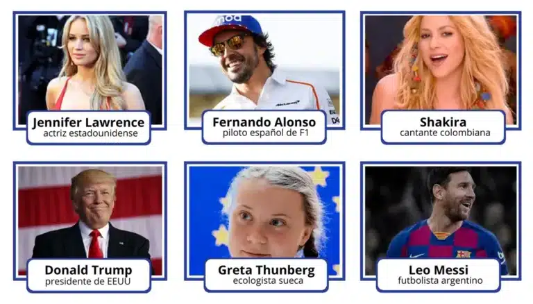 Imagina que puedes pedir lo que quieras a los famosos de más abajo y ellos te harán caso. ¿Qué les pides? Graba tu respuesta y envíasela a tu profesor.