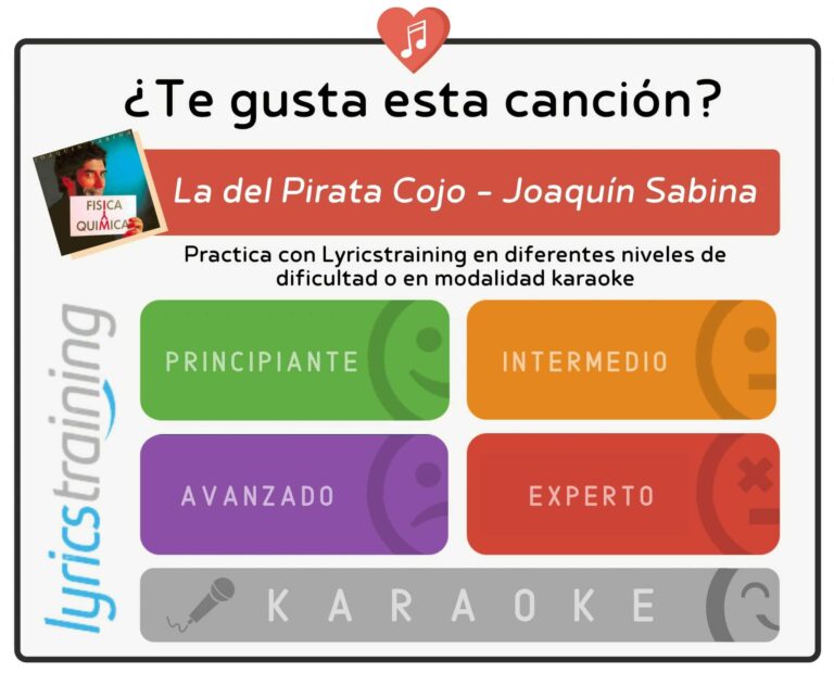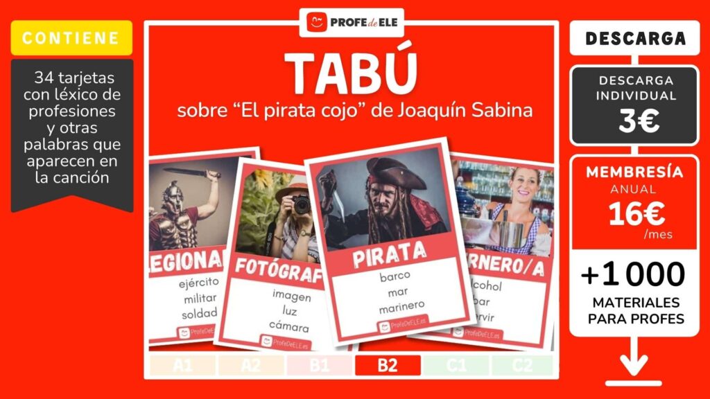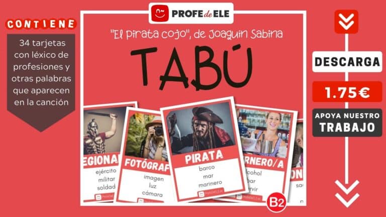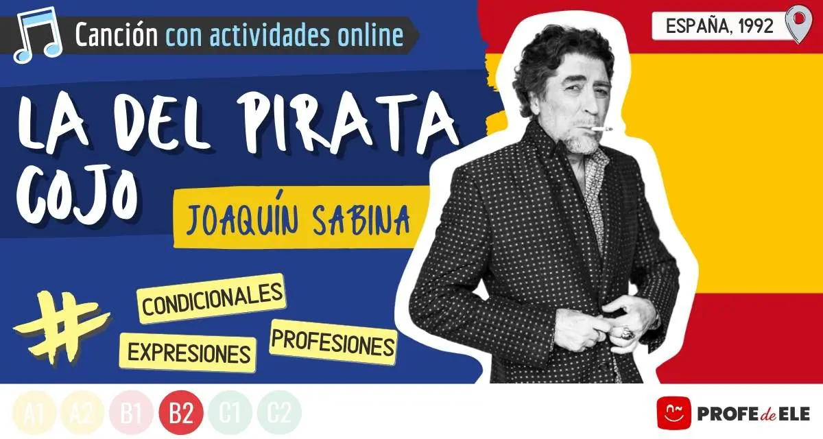 Ahora vas a escuchar la canción titulada La del pirata cojo de Joaquín Sabina. En ella se mencionan los “oficios” de la actividad anterior. Completa esta actividad en Lyricstrainning y después vuelve a ProfeDeELE para seguir con el resto de actividades.