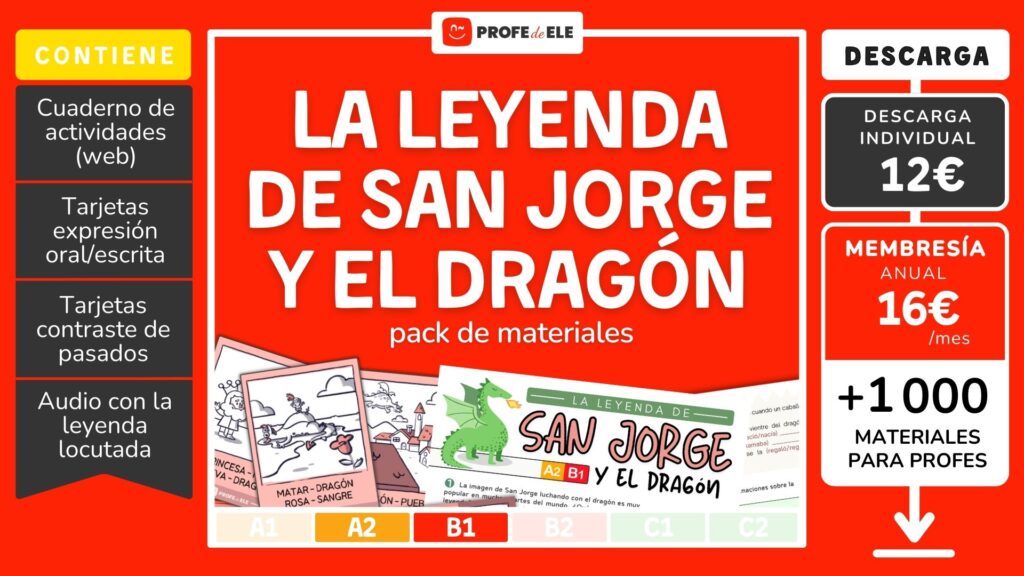 Unidad didáctica interactiva con la leyenda de San Jorge y el dragón para trabajar el contraste de pasados. Nivel A2/B1.