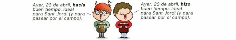 Laura y Leo son una pareja de ávidos lectores. Celebran el Día de Sant Jordi, unas veces en la feria del libro y otras de excursión en el campo. Observa las siguientes frases: