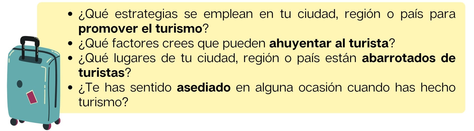 • ¿Qué es la turistificación? ¿Podrías explicar el término con tus propias palabras? ¿Existe ese problema en tu ciudad?