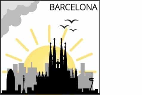 • las palabras en rojo que remiten a lugares y elementos típicos de Barcelona