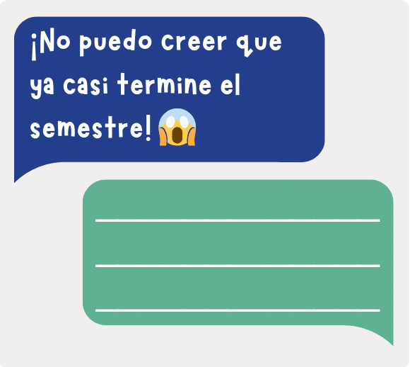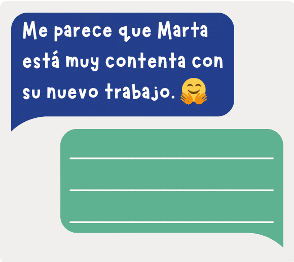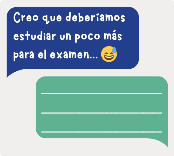- Actividad 9: Responde a los mensajes. Esta actividad pretende promover la interacción escrita: tus estudiantes responderán a los mensajes de texto por escrito reafirmando la idea con algún marcador de los propuestos. En caso de trabajarla con adolescentes o adultos en un contexto en grupo, puedes proponer la actividad entre dos compañeras o compañeros que simulen la conversación en WhatsApp para compartir el pantallazo del mensaje y la respuesta y hacerlo así más realista.