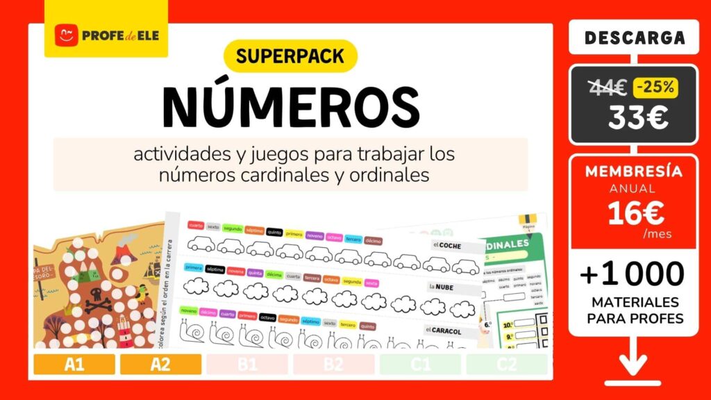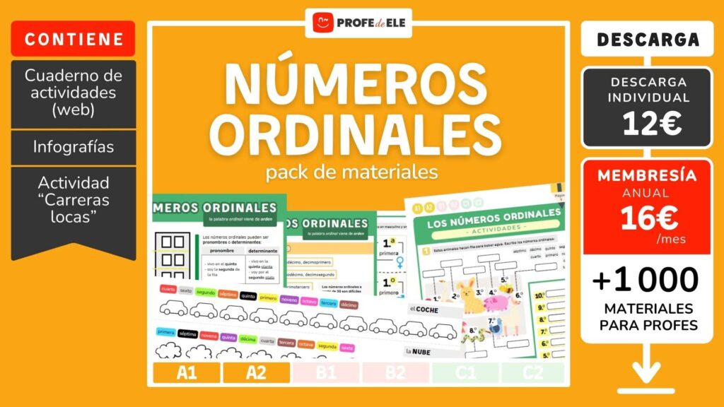 Enseña los números ordinales en español con esta actividad A1-A2. Incluye infografía, 6 ejercicios interactivos y material descargable.