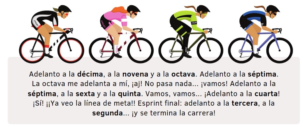Mara está en una carrera de bicis, pero… ¿en qué posición termina la carrera? Lee con atención la adivinanza y responde.