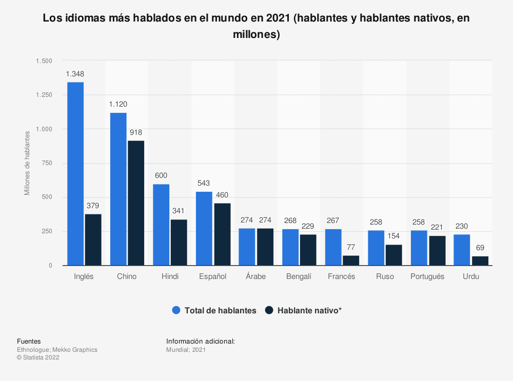 Observa el siguiente gráfico sobre los idiomas más hablados del mundo y sigue las instrucciones para completar la tarea.