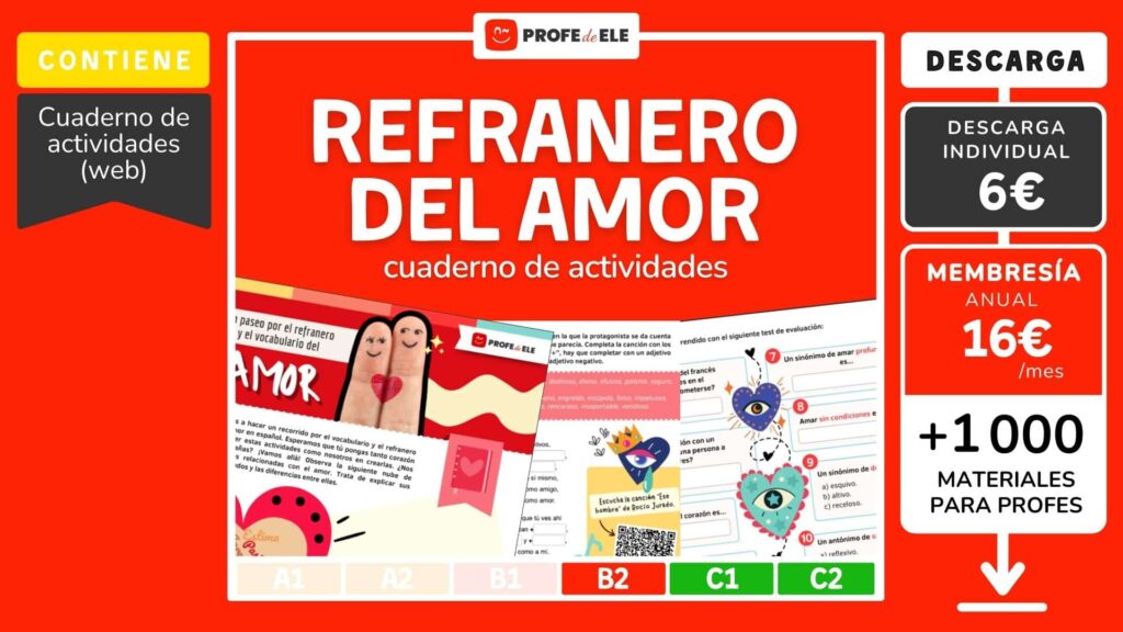 Aprovechando el día de San Valentín, vamos a hacer un recorrido por el vocabulario y el refranero del amor en español. Esperamos que tú pongas tanto corazón al hacer estas actividades como nosotros en crearlas. ¿Nos acompañas? ¡Vamos allá!