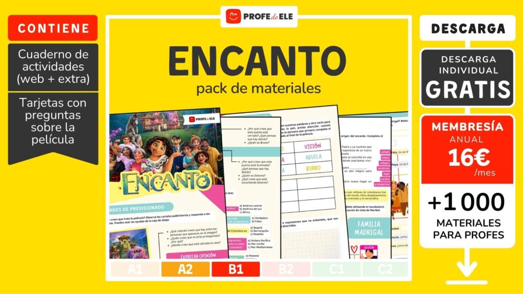 Actividades interactivas sobre la película de Disney «Encanto» para clase de español de nivel bajo – medio (A2-B1).
