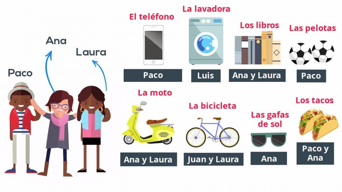 Indica quién posee cada objeto. En alguna ocasión puede haber más de una respuesta correcta. Indícalas todas.