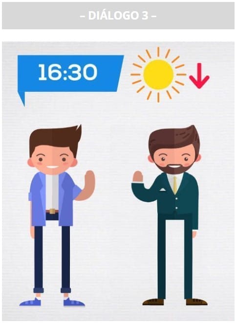 • Actividad 2: Ordena las letras. El objetivo de este ejercicio es ordenar las letras para dar con 7 saludos y despedidas básicos en español de nivel A1. El apoyo visual a través de ilustraciones es especialmente útil para entender en qué momento del día se dice «buenos días», «buenas tardes» y «buenas noches». Puedes aprovechar ahora para preguntar a tus estudiantes si existen estos saludos en sus lenguas y, en caso afirmativo, en qué se basan para decantarse por uno u otro.