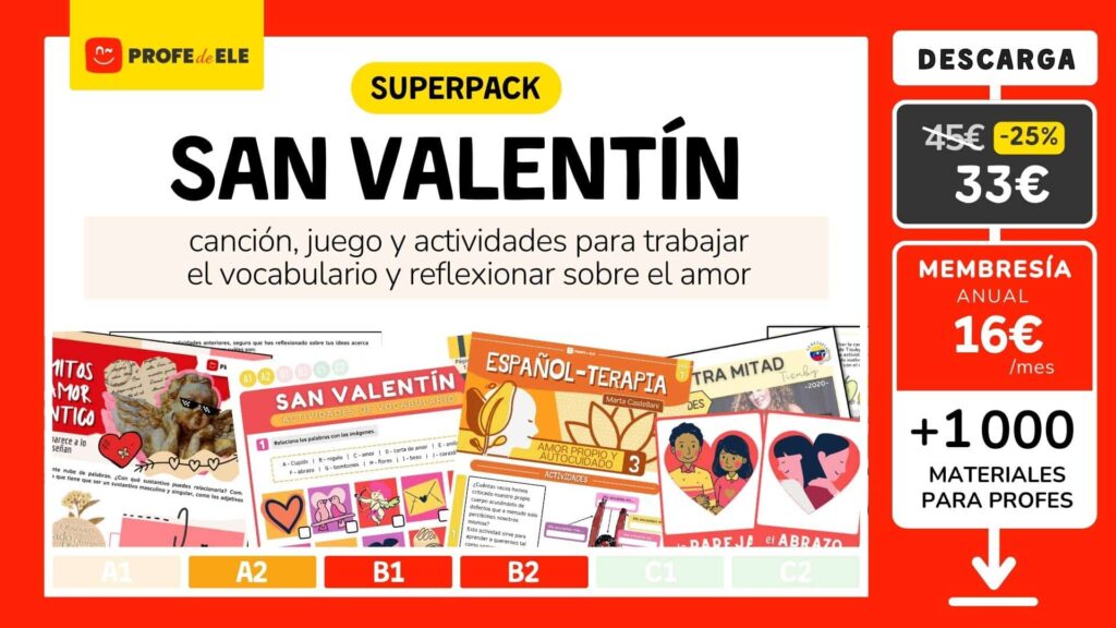 Si te interesan los recursos complementarios de esta secuencia didáctica, los puedes conseguir pagando una pequeña cantidad (ver final de esta página) o puedes suscribirte a una de nuestras membresías y tener acceso a todos nuestros materiales de español.