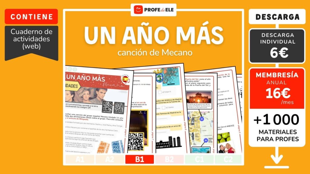Canción para trabajar la celebración de la Nochevieja en España y en Hispanoamérica, nuevo léxico y dar deseos con subjuntivo. Nivel B1.