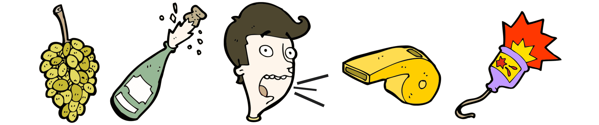 Hay una serie de elementos que no pueden faltar en la celebración de la Nochevieja y que van a aparecer en la letra de la canción Un año más. Une las definiciones con sus palabras para descubrirlos.