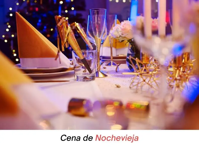 La cena de Nochevieja suele ser en familia. Poco antes de la medianoche las familias ven por televisión la retransmisión de las doce campanadas desde el reloj de la Puerta del Sol en Madrid. Por cada campanada que suena se come una uva. Se dice que es el único momento del año donde todos los españoles hacen algo al mismo tiempo.