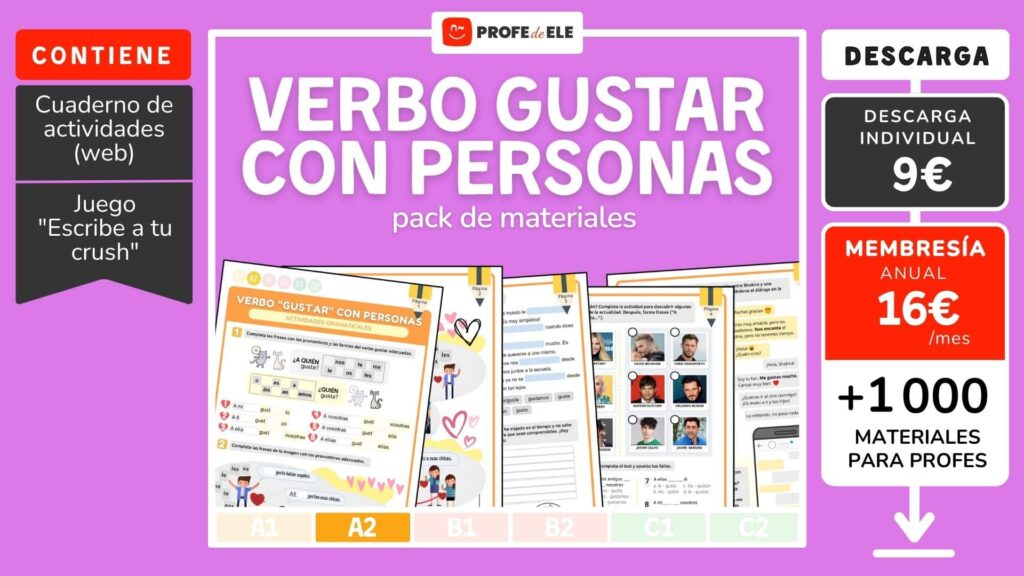 Explicación y actividades para aprender a usar el verbo gustar con personas.