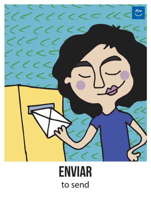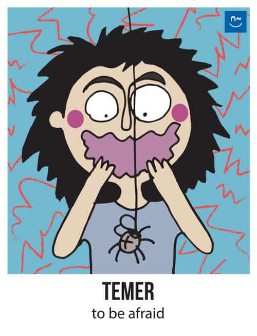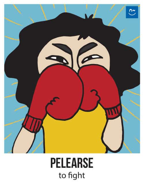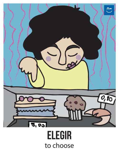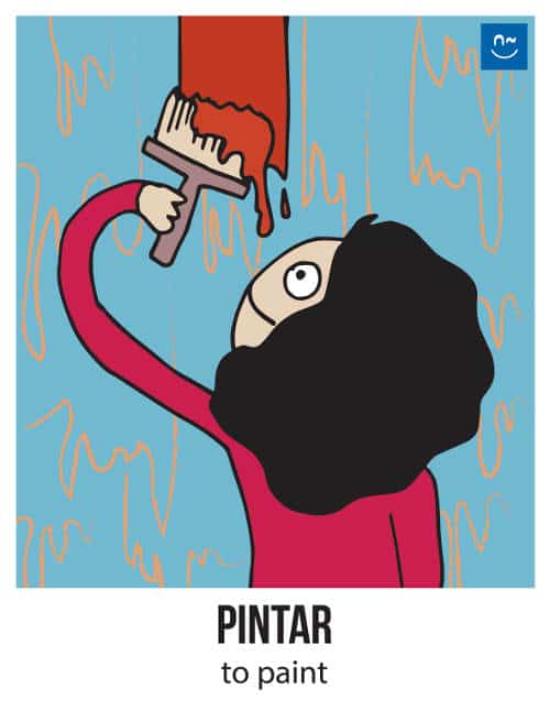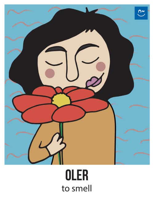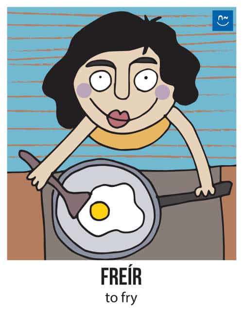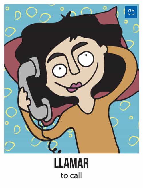 Escoge un verbo. Tus compañeros tendrán que adivinar ese verbo haciéndote preguntas con el verbo inventado “fliflear“. Observa el ejemplo de la imagen.