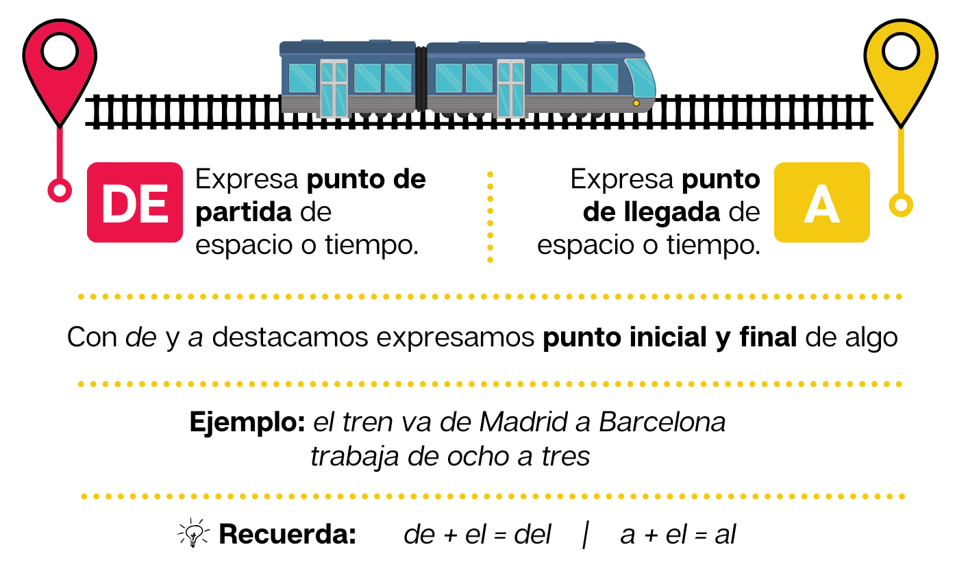 El cortometraje es la historia de dos osos. Viajan DEL Polo Norte A a otro país. Observa la siguiente infografía sobre las preposiciones DE y A.