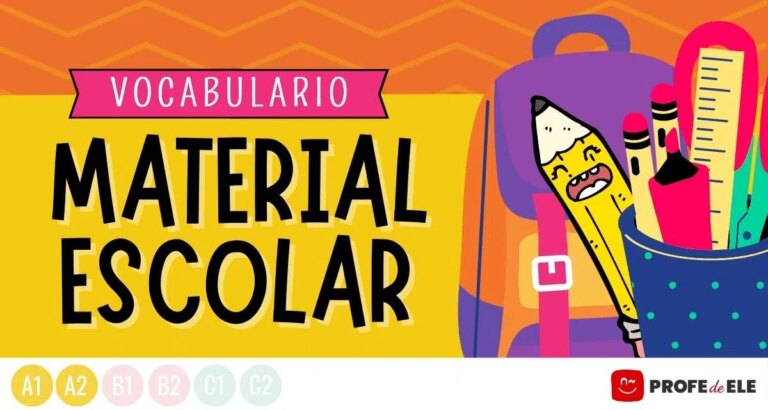 Vocabulario ilustrado del material escolar en español y actividades online para practicar las palabras con juegos. Nivel A1-A2.