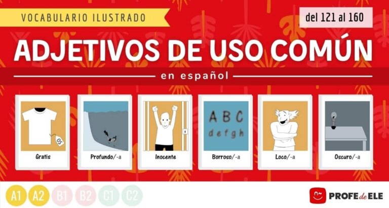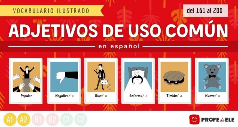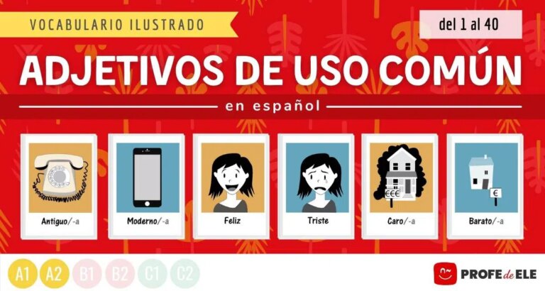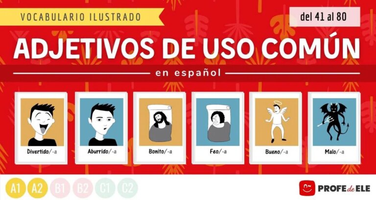 Aprende 40 adjetivos de uso común en español con fichas ilustradas y actividades online divertidas. Nivel inicial: A1/A2.