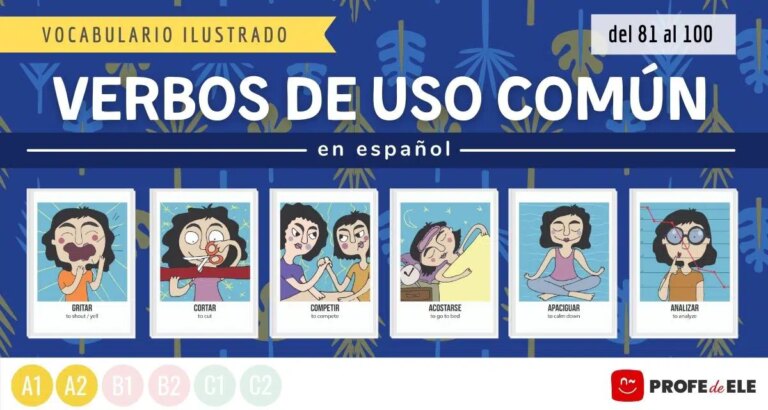 Verbos ilustrados en español y actividades para practicar y aprenderlos. Del verbo 81 al 100. Nivel A1+